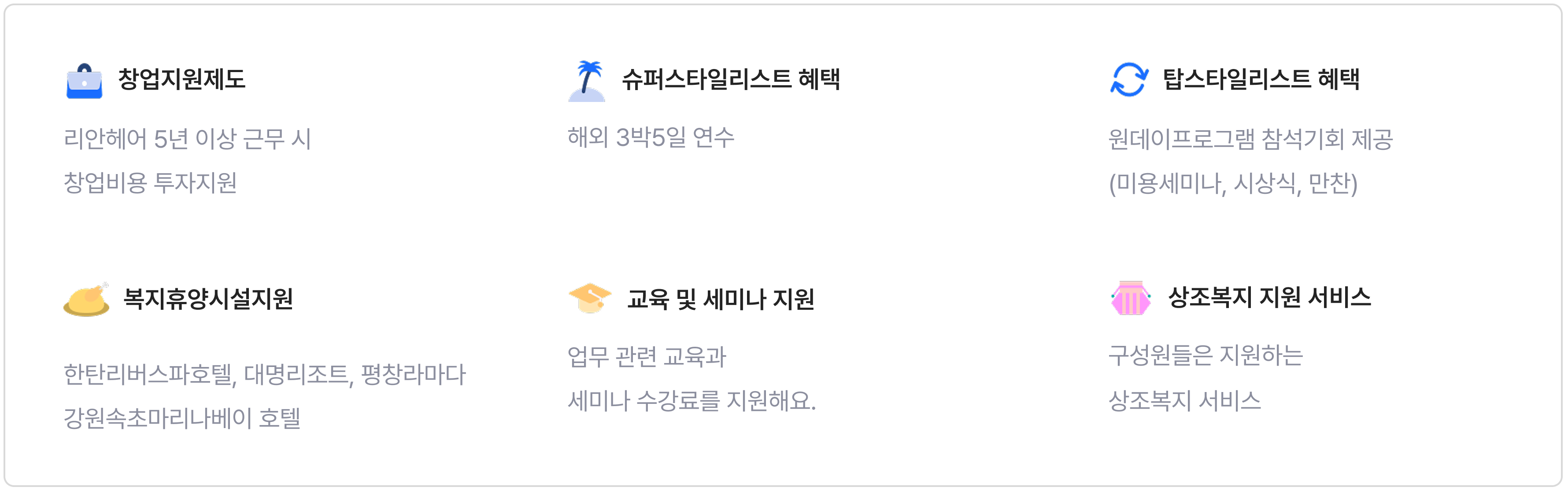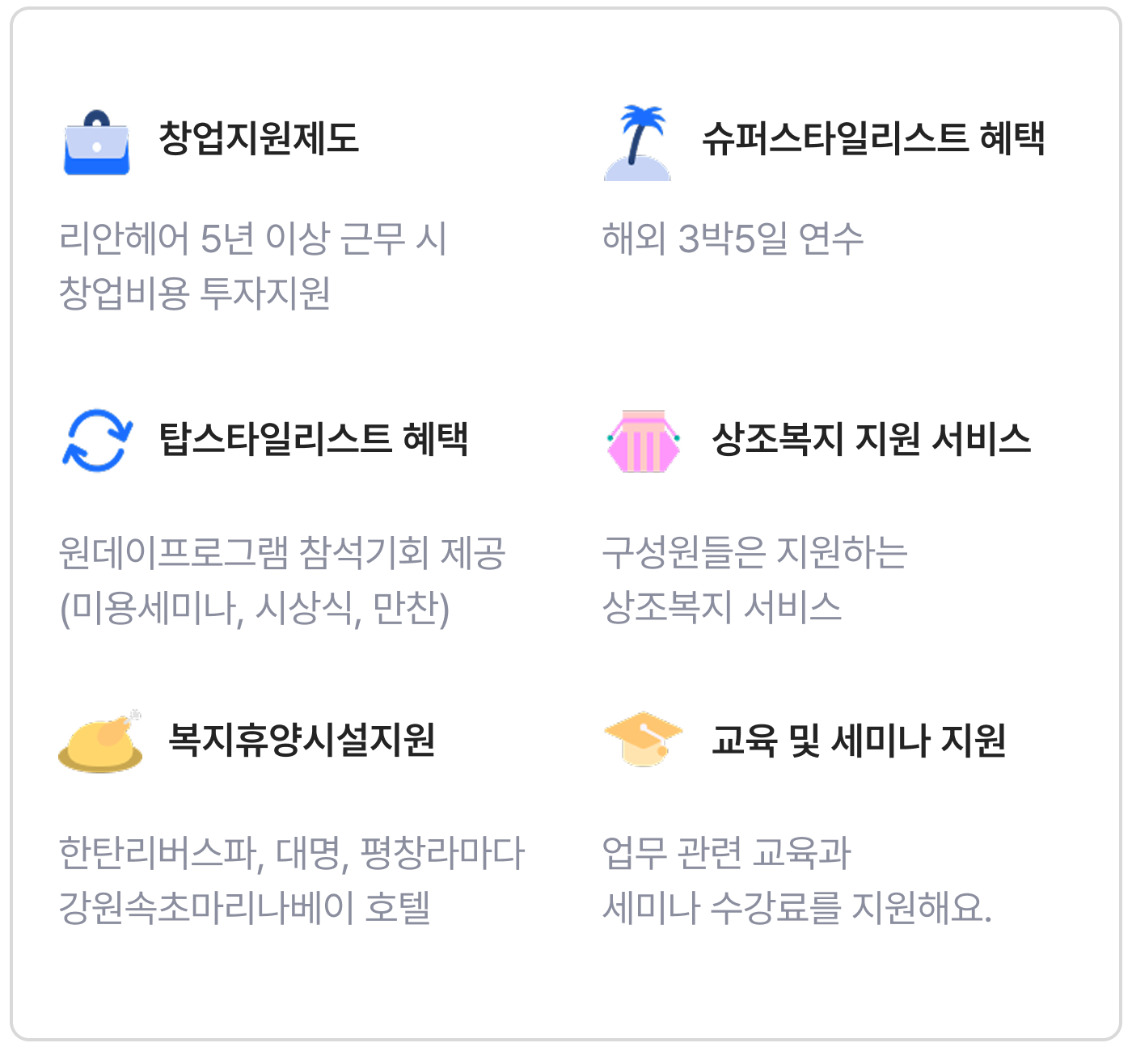 리안헤어의 복지 및 혜택입니다.