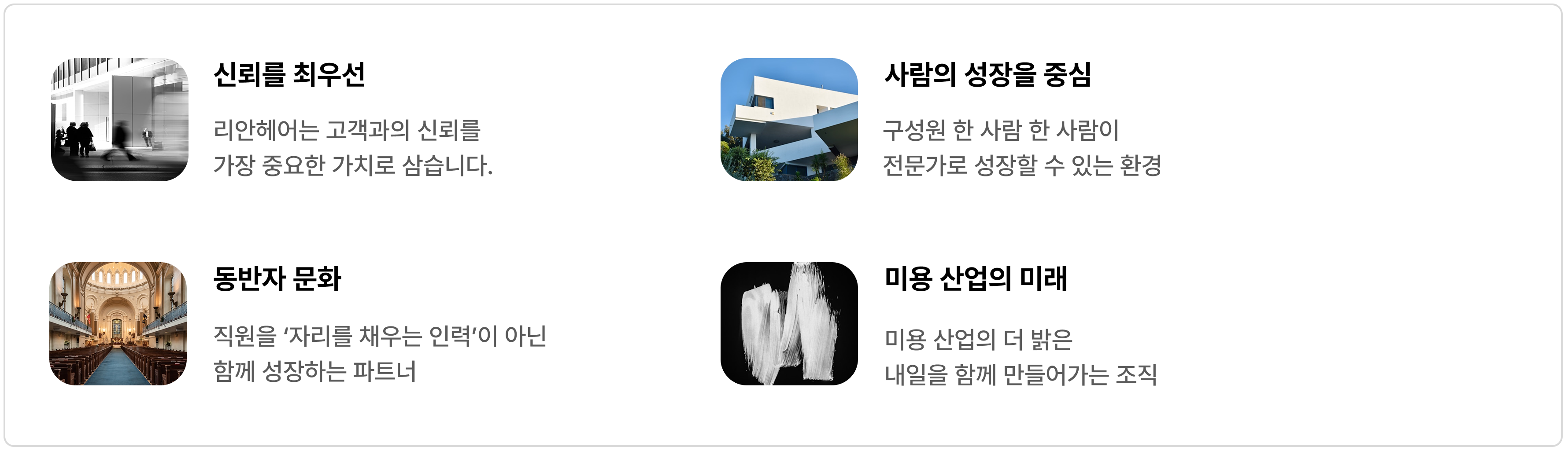 리안헤어의 기업문화입니다.